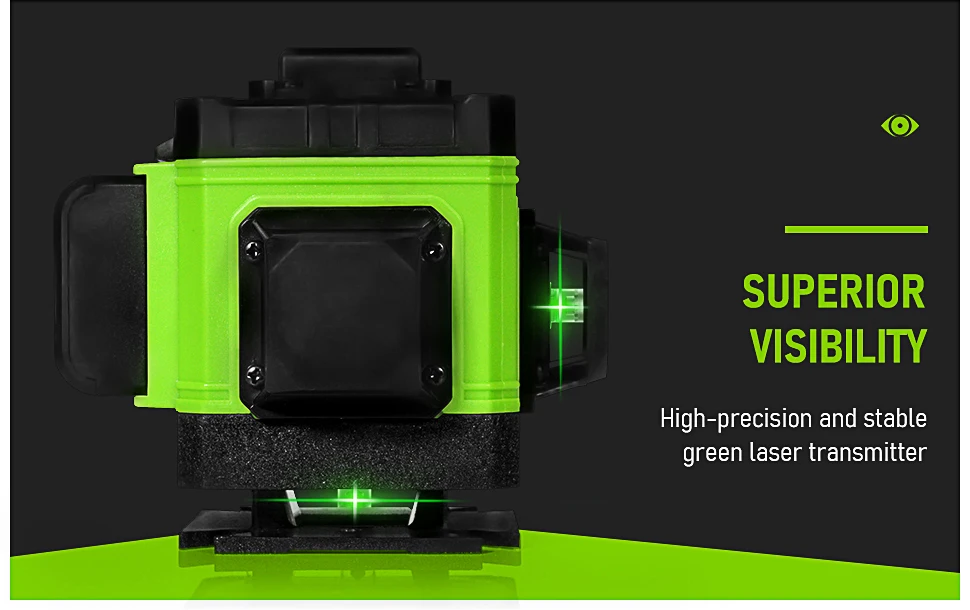 В IE12A зеленый лазерный уровень с более высокой видимостью, глаза чистые для всех-новый опыт. Ярко-зеленый лазерный луч с До 2x ярче стандартных ламп красные лучи, что ощутимо увеличивает эффективность работы.