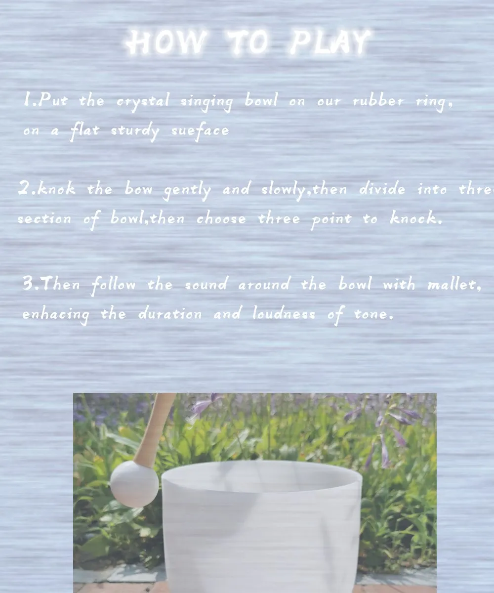 2. Мы можем предложить Кристальные поющие чаши размером от 6 до 24 дюймов, и все тона C D E F G A B, если у вас есть какие-либо вопросы, пожалуйста, свяжитесь со мной, Я хотел бы предложить вам как можно скорее.