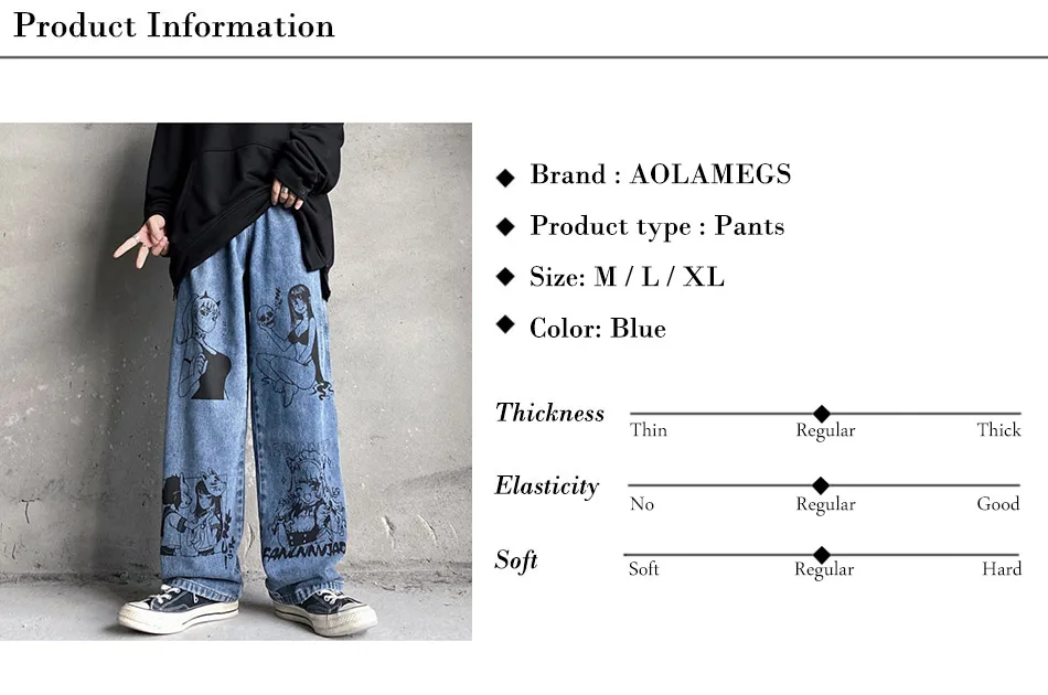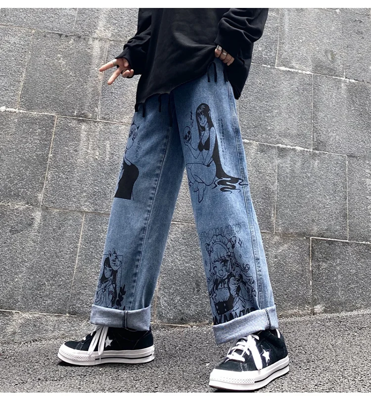 Мужские джинсы с аниме принтом Aolamegs, мешковатые брюки в стиле ретро, уличная одежда повседневные Прямые джинсы, модные ковбойские брюки