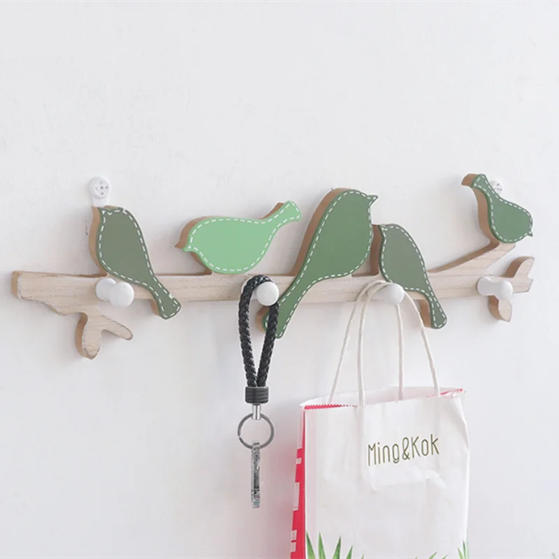4 крючка, декоративные крючки для дома, птица, дерево, пальто, крючок, вешалка для одежды, гостиной, настенный дверной Подвесной Настенный декор, кошелек, крючок
