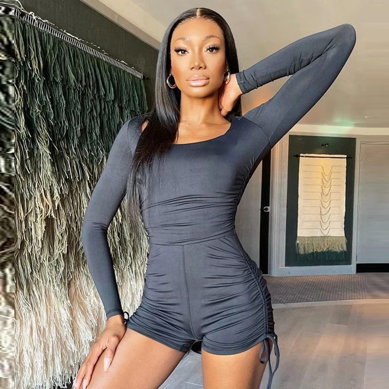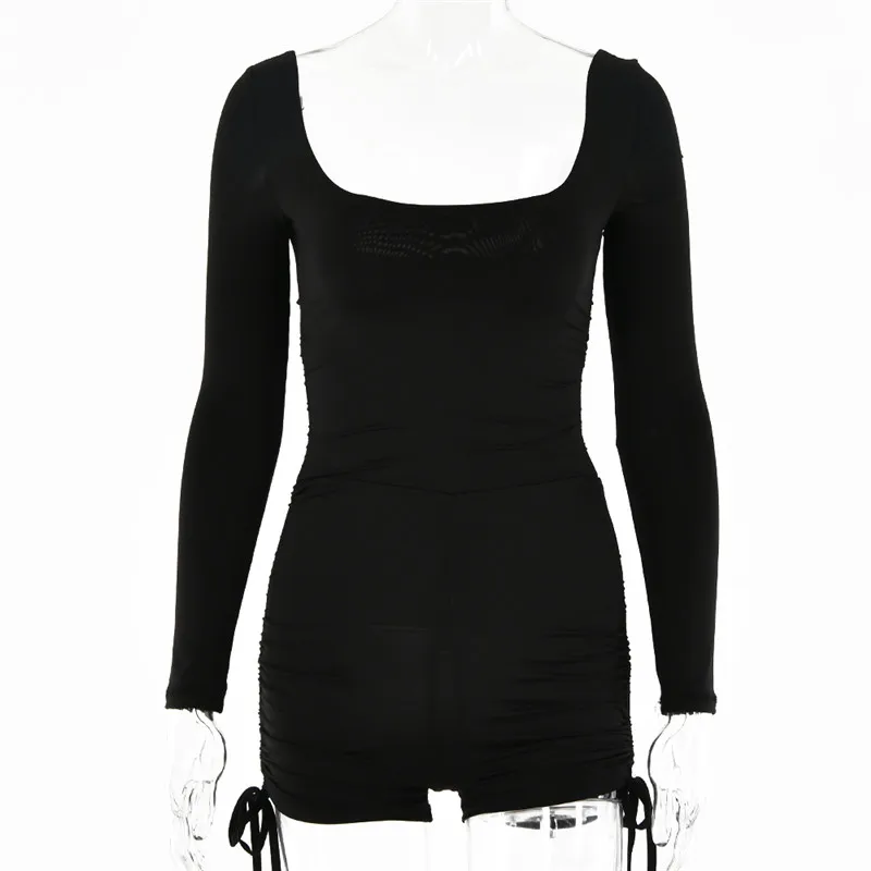 Цвет:Женский комбинезон с длинным рукавом Sibybo, облегающий спортивный Байкерский комбинезон с рюшами и квадратным воротником, лето сексуальный комбинезон с открытой спиной