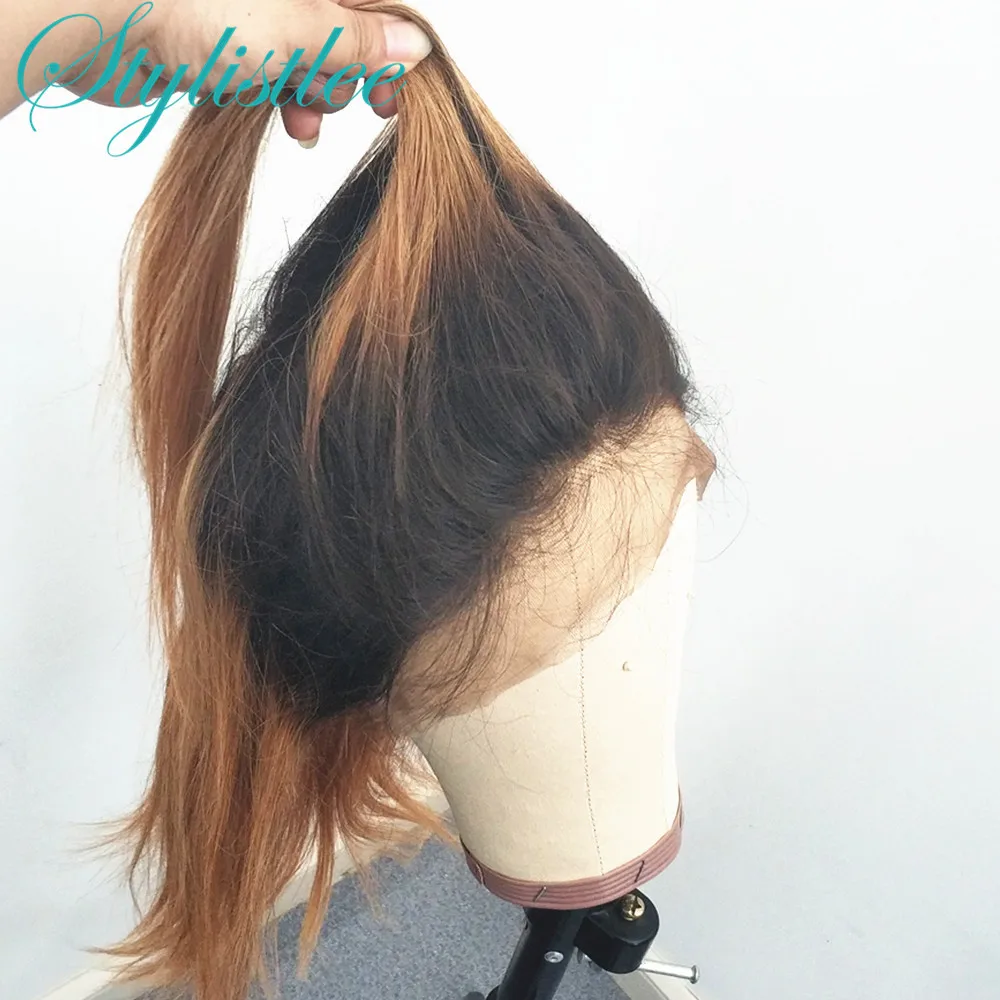 Stylistlee медовый блонд цвет Омбре прямой парик 13X4 кружевные передние человеческие волосы парики для черных женщин предварительно сорванные бразильские Remy 1B 30 парик шнурка