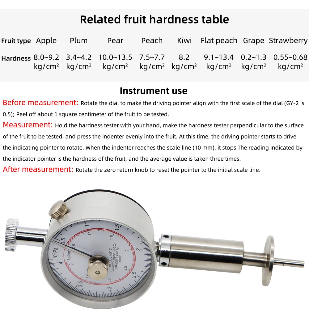 1. Это специально для проверки твердости фруктов, таких как яблоки, груша, клубника, виноград и так далее.