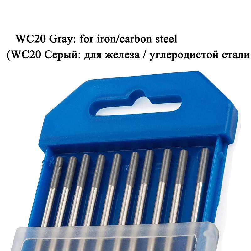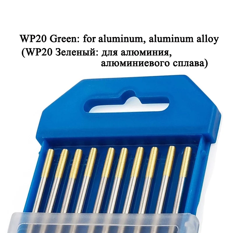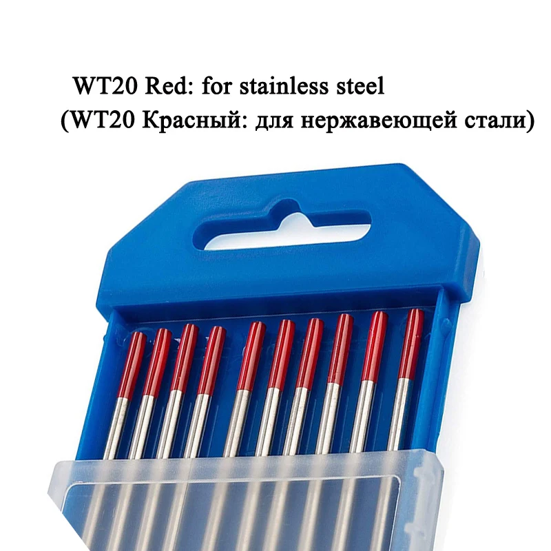 Изделие: вольфрамовые сварочные электроды Длина: 150 мм Диаметры: 1,0 мм, 1,6 мм, 2,0 мм, 2,4 мм, 3,0 мм Использование: WT20 красный: для сварки нержавеющей стали WC20 серый: для сварки железа/углеродистой стали WP20 зеленый: для сварки алюминия, алюминиевого сплава