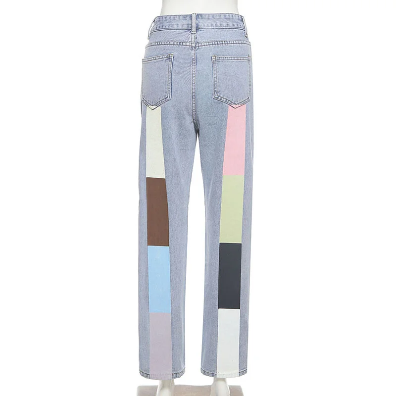 Тренд: | Винтажные джинсы хараюку с контрастным принтом | |