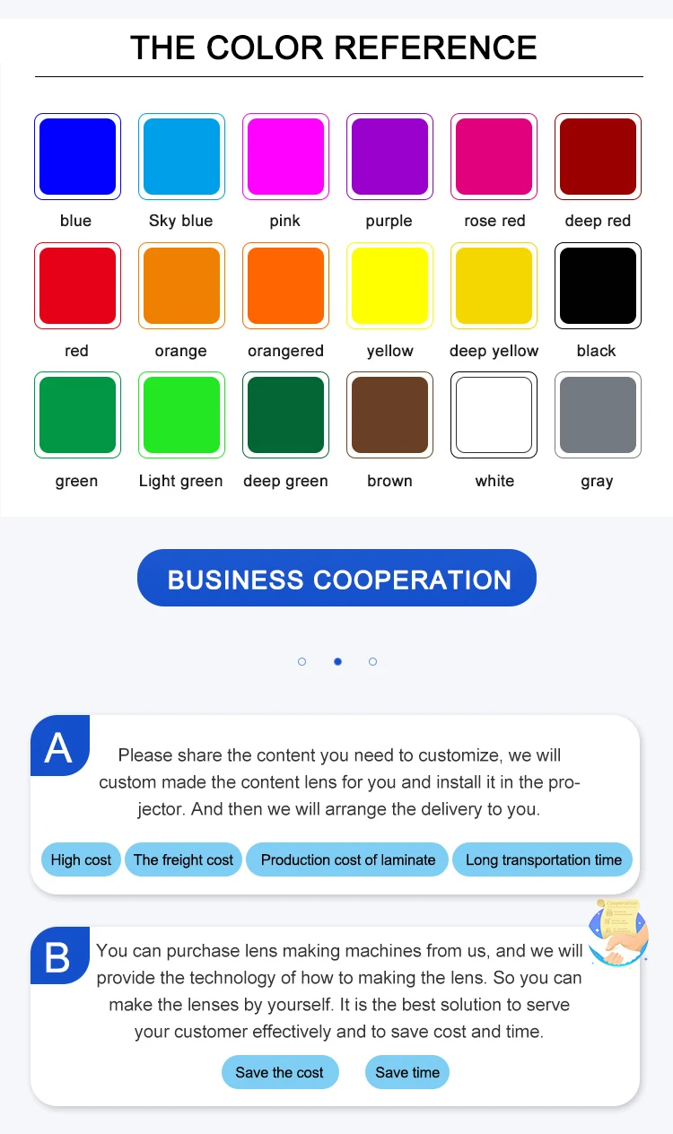 Проектор должен использоваться с объективом gobo, поэтому, пожалуйста, приобретайте проектор и объектив gobo вместе. (простые цветные линзы $10/шт. Сложные линзы логотипа $25/шт.) Затем отправьте ваш индивидуальный логотип файлы (AI / CDR/JPG/ПСД/PNG) в наш адрес электронной почты: chenhaiyi@yufane.com Наконец, мы установим линзы логотипа в проектор zhe и отправим вам.