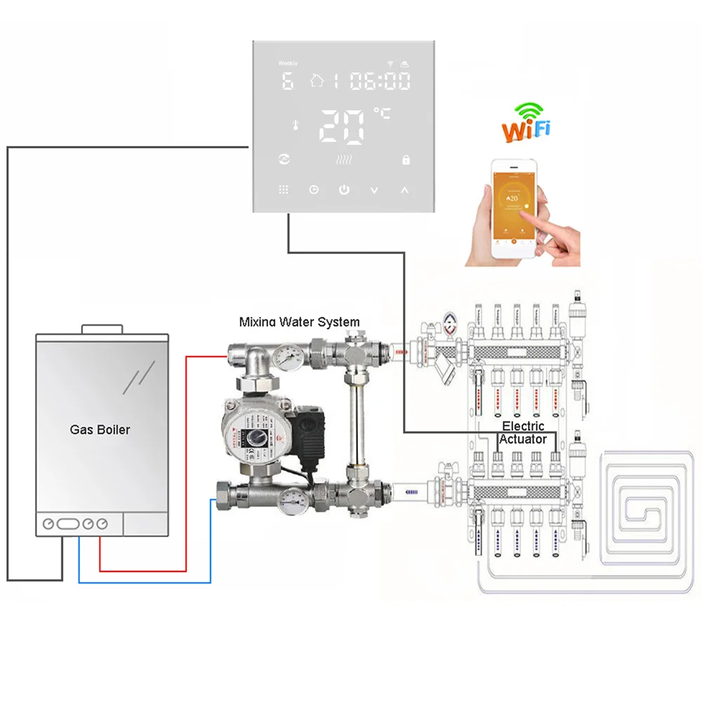 3A HY607WW- wifiНагревательный термостат используется для контроля газового котла и водного напольного отопления (например, теплового привода). Моторизованный клапан и т. д.И вы можете использовать itto для установки комфортной комнатной температуры и экономии энергии.