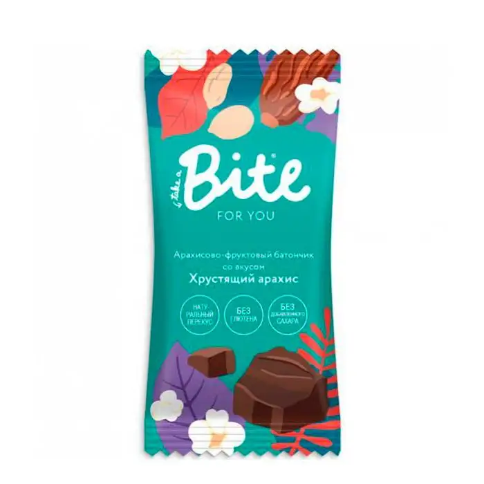 Батончик арахисово-фруктовый Bite for you Хрустящий арахис 35г по 20шт