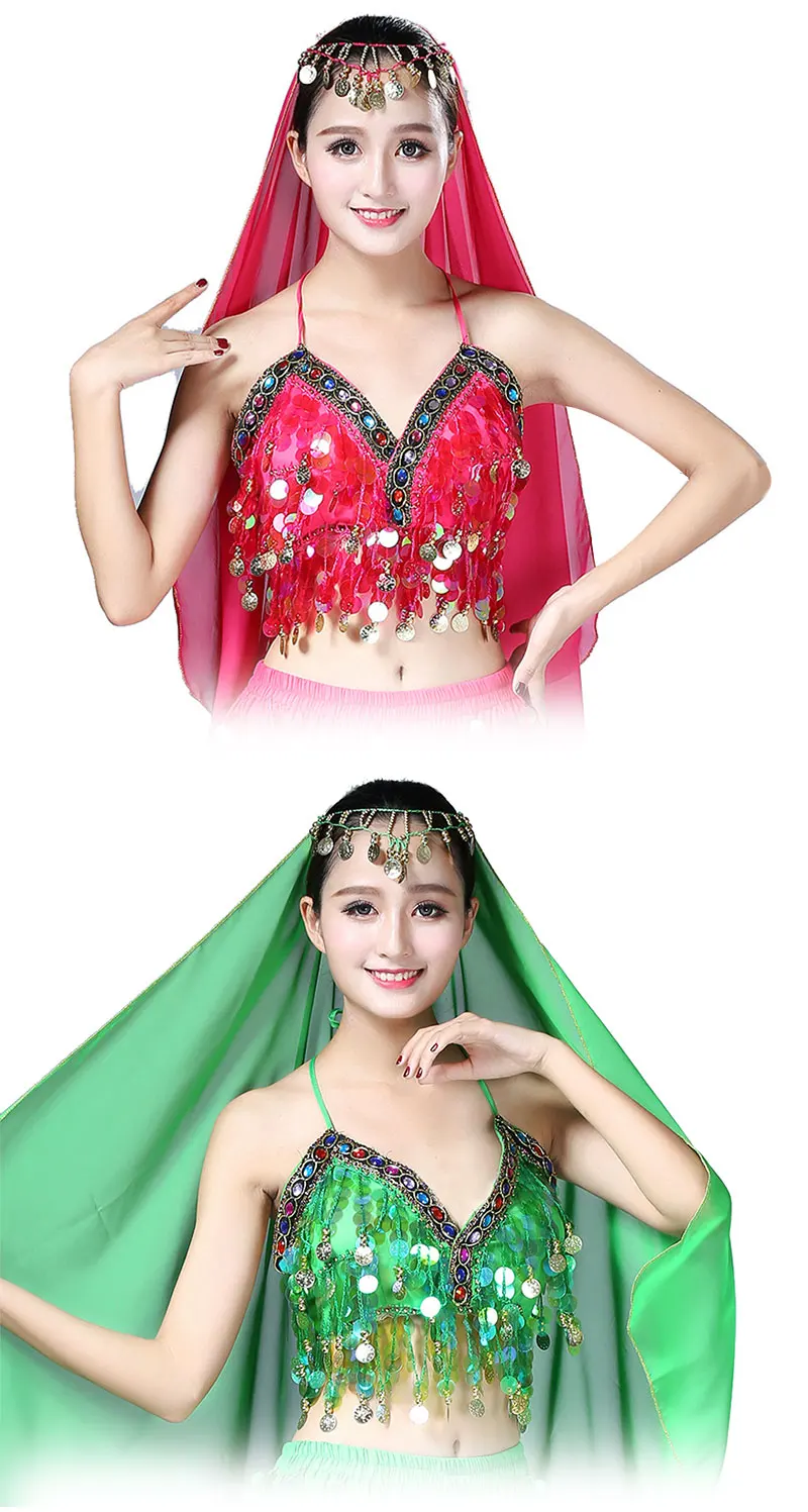 Тип товара: танцевальный Топ с блестками на шее/индийский Топ для танца живота