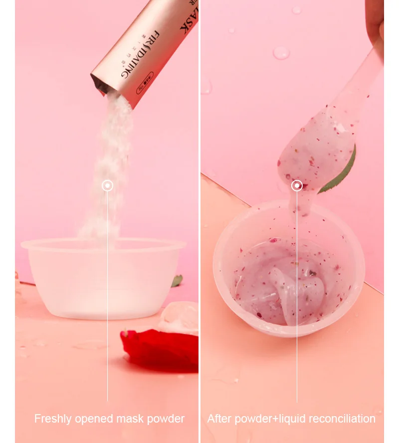1. После очищения нанесите порошок маски в чистую миску, добавив гиалуроновую кислоту или воду.