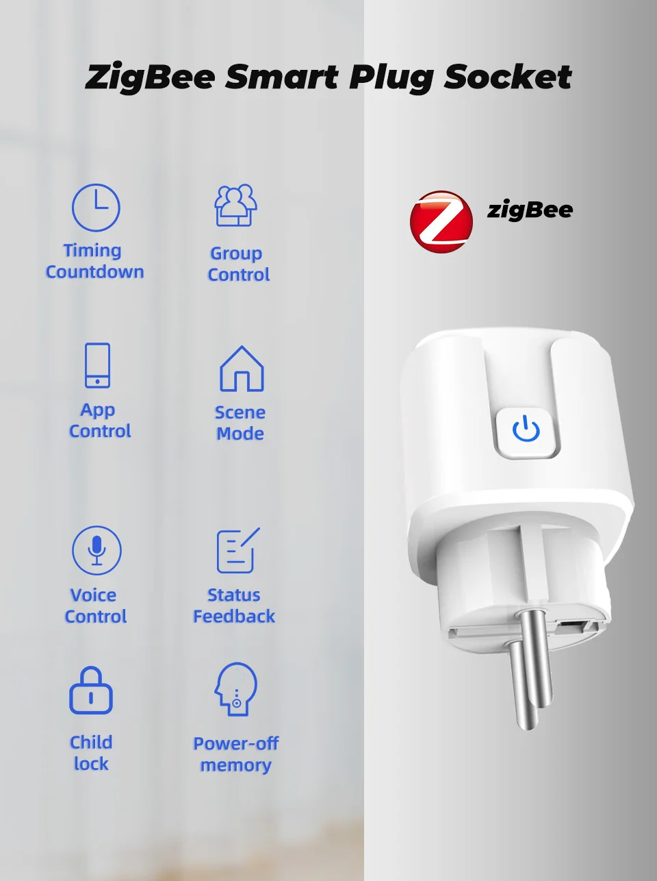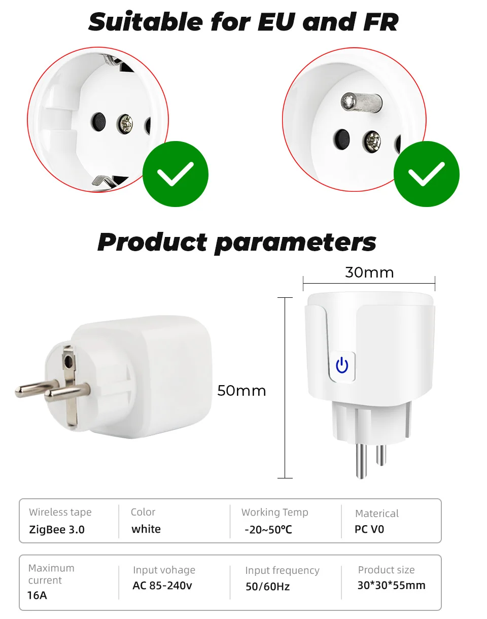 The ZigBee smart plug socket is perfectly compatible with Amazon Alexa and Google Home. Simply send voice commands to "them" to control the sockets.