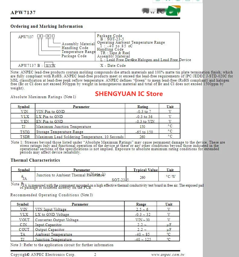 20 шт./Лот APW7137BI-TRG W37B W37 SOT23-5 APW7137BI APW7137 1 МГц, высокая эффективность, повышающий преобразователь с внутренним переключателем FET 100% новый импортный оригинал 100% качество
