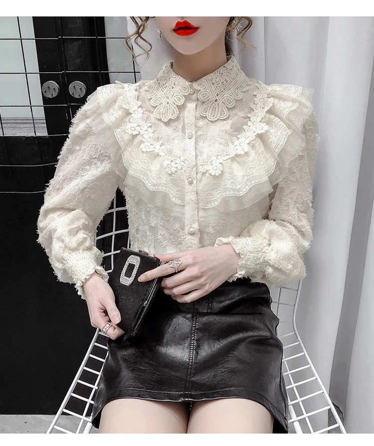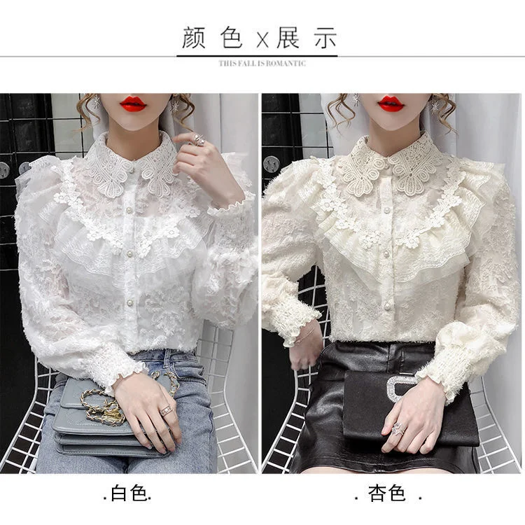 Весна 2023 женская одежда шелковая рубашка винтажная блузка женский прозрачный