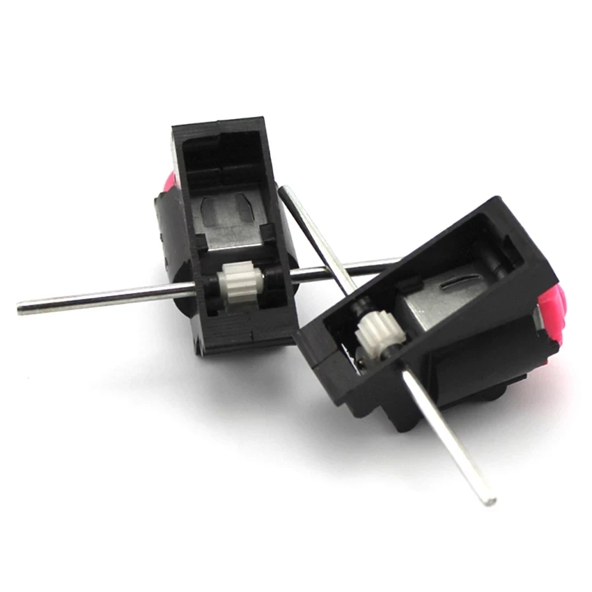 Чехол: Используйте двустороннюю ленту для фиксации коробки передач на маленькую деревянную доску, маленькую пластиковую доску (или толстый картон), И затем установите две маленькие колеса диаметром 2,5 мм на голенище, тогда вы можете сделать ручной тележки заднего колеса системы нет.