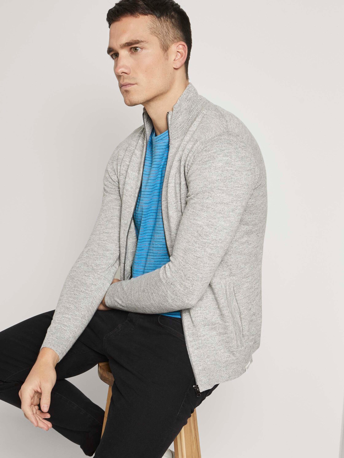 Кардиган мужской серо-черный TOM TAILOR, modern basic zip jacket
