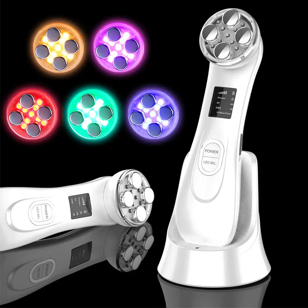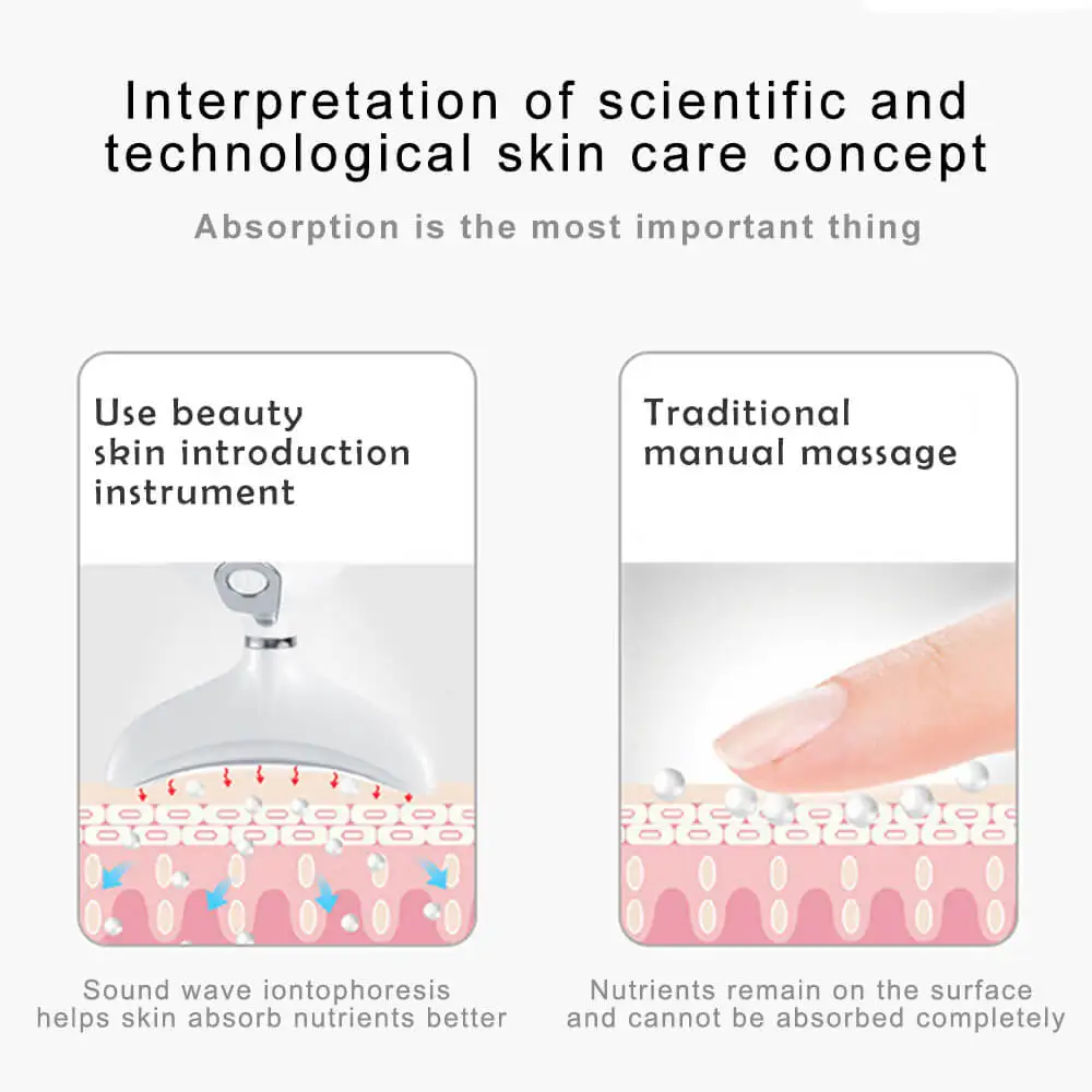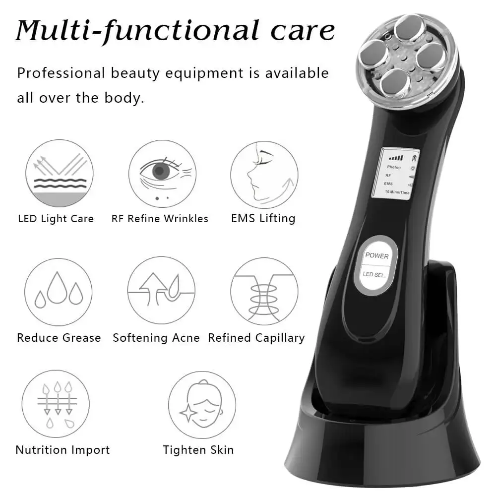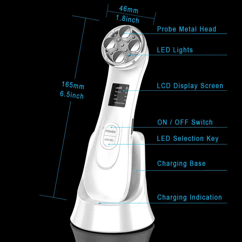 【1】 Radio Frequency ( RF ). 【2】 Led light Therapy. 【3】 Adopts 3 advanced beauty technologies. 【4】 Electrical Muscle Stimulation (EMS)+Mesoporation +Electroporation. 【5】 Compact & Ergonomic design, easy to operate and carry. 【6】 Portable, home use and travel use. 【7】 4 Electrical tips and 9 pieces of LED lamps for treatment. 【8】 Healthy, painless skin care. 【9】 Face lifting, Anti wrinkle, Anti aging, skin tightening. 【10】 Moisturizers and lotions are encouraged to be used with the device. 【11】 About 10 minutes treatment daily can keep sharp body, smooth skin and young face.