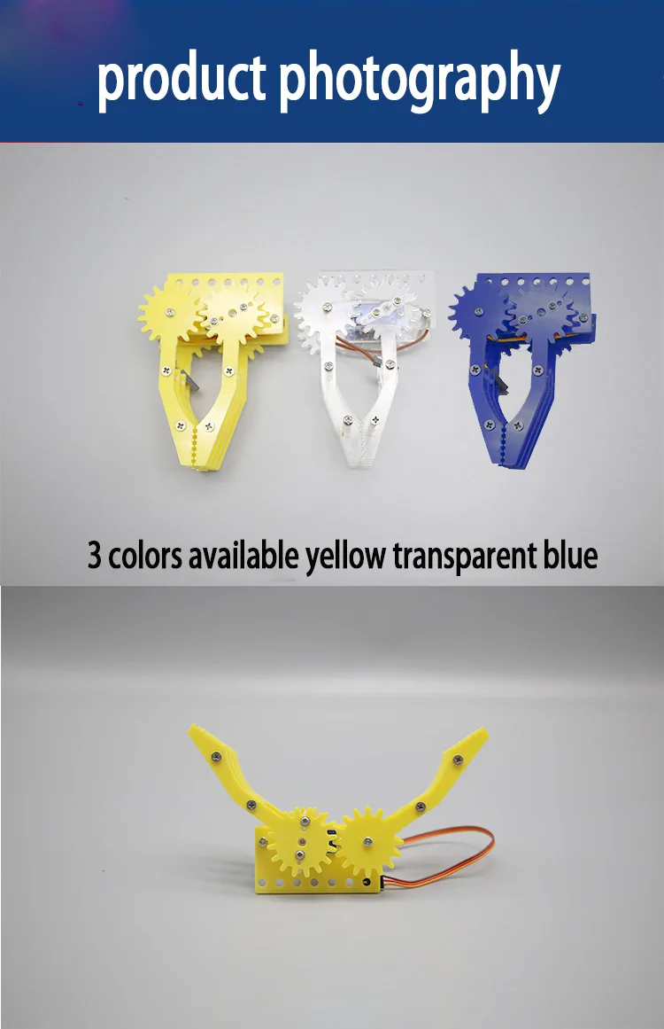 [Features] : The design structure is simple and strongSymmetrically grasping manipulatorIt's driven by a steering engineQuick response and high precisionGrab object gift big
