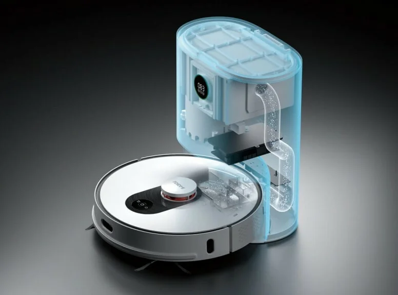 Главная особенность нового робота-пылесоса – это его многофункциональное зарядное устройство. Оно может выполнять функцию всасывающей станции. Она заключается в возможности очищения пылесборника пылесоса его зарядной базой.