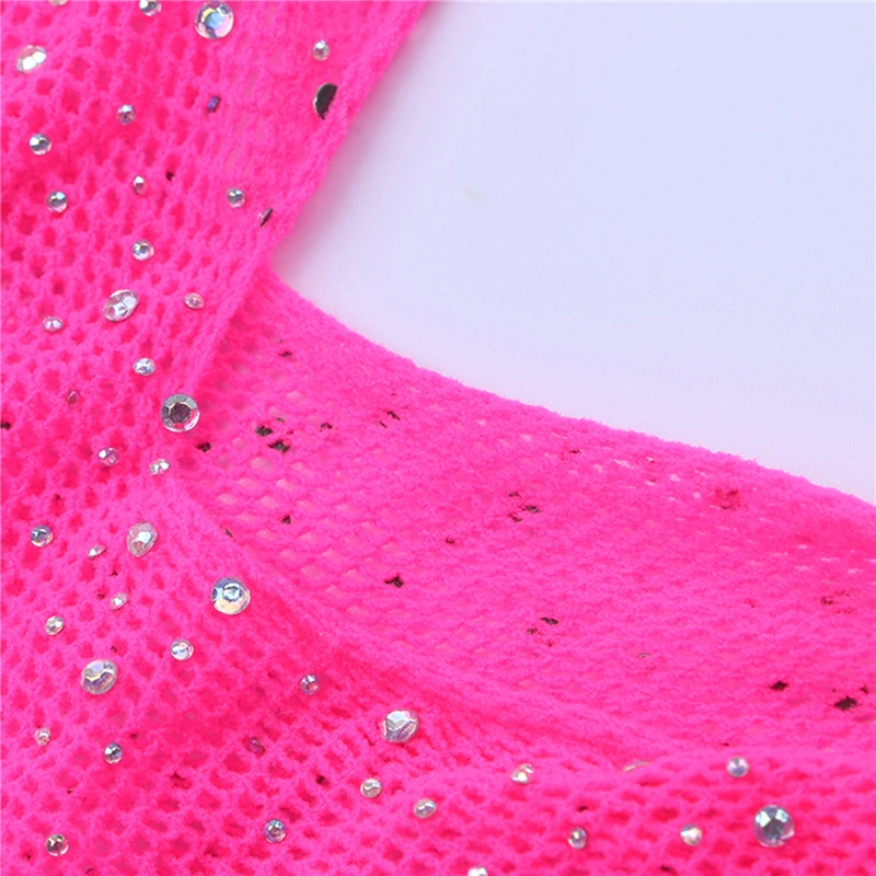 Сексуальный женский сетчатый Блестящий Комбинезон Стразы Короткие Брюки Летний