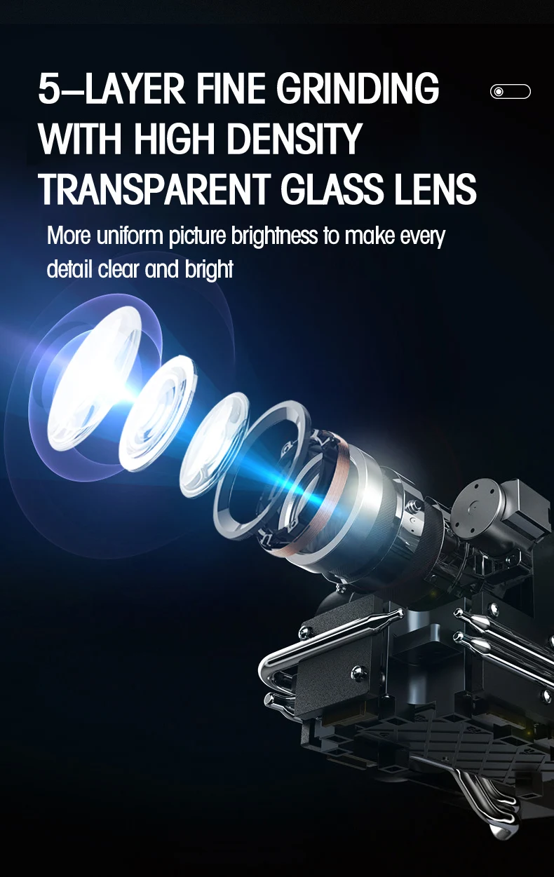 5-ти слойной тонкого помола с высокой плотностью прозрачные стеклянные линзы, более равномерный яркости изображения, чтобы сделать каждую деталь четкие и яркие