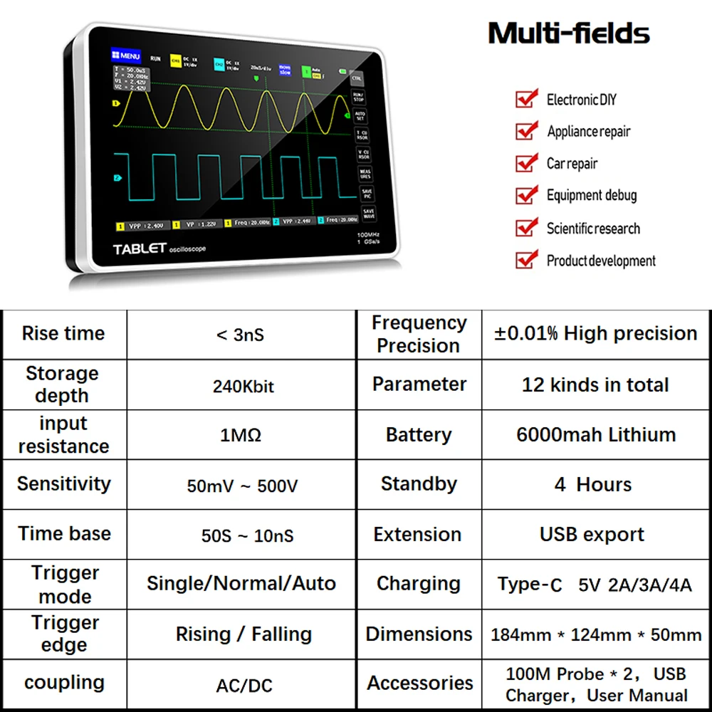 2 * соответствующий зонд 100 МГц (1X и 10X)
