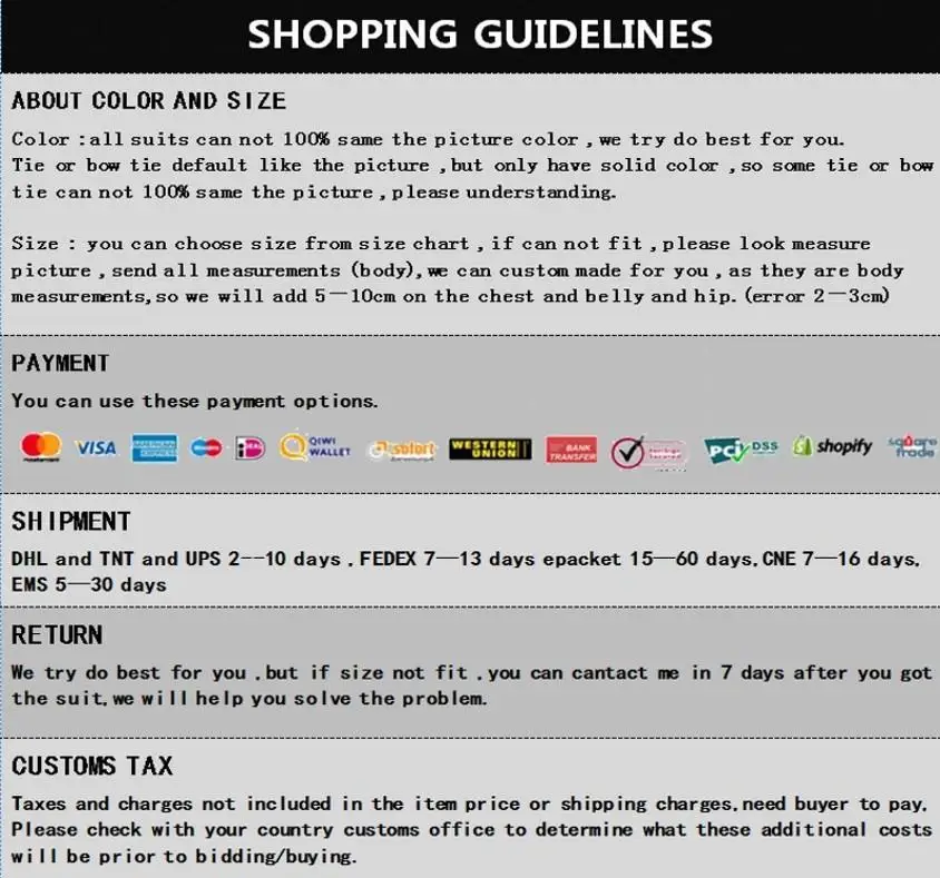 Все костюмы могут изготавливаться на заказ; Размеры для мальчиковВы можете измерить свои измерения и выбрать цвет (по умолчанию, как на картинке), и написать их в примечании к заказу, или вы можете нажать на сообщение продавца, затем отправьте мне все измерения и цвет или нажмите онлайн-чат со мной, когда вы заказываете костюм.