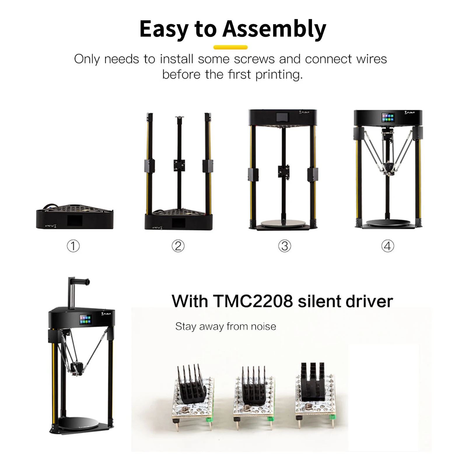 Легко в сборке, нужно только установить несколько винтов и подключить провода перед первой печатью. Высокая скорость печати и высокое качество печати.