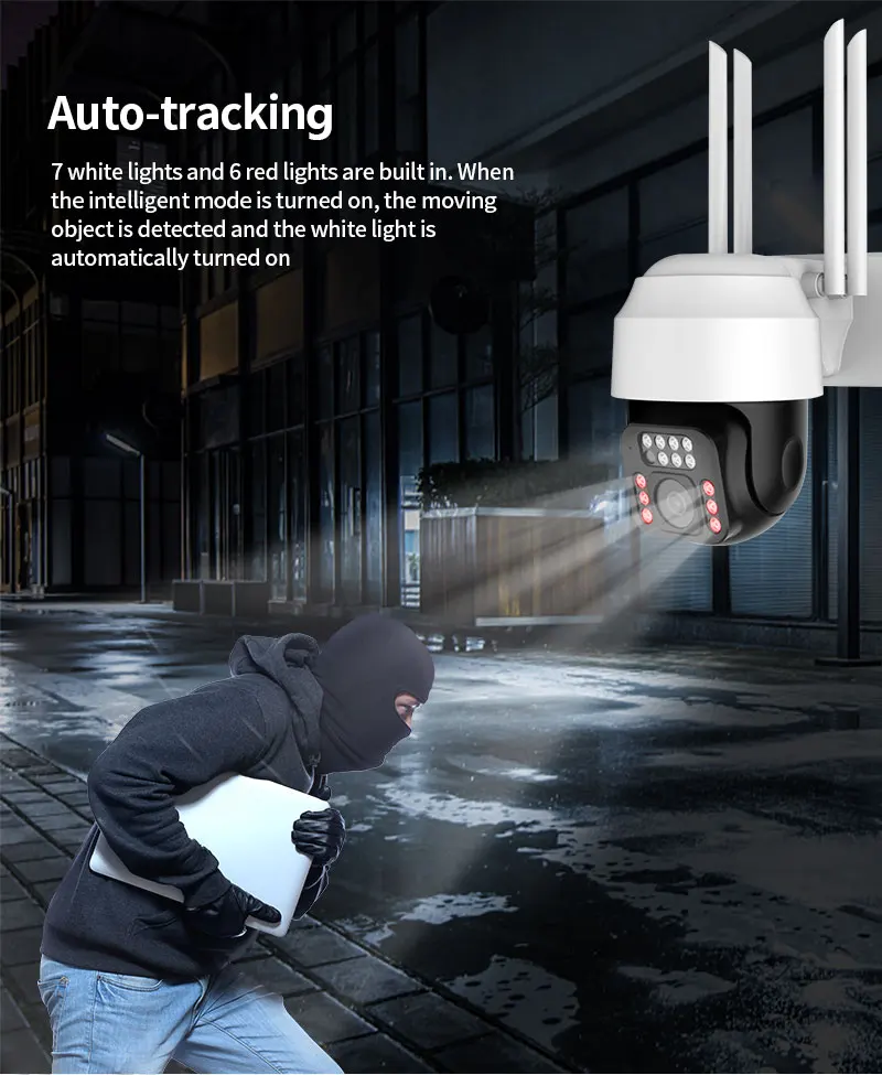 4.PTZ: вращается на 355 градусов влево и вправо и вращается на 90 градусов по вертикали;