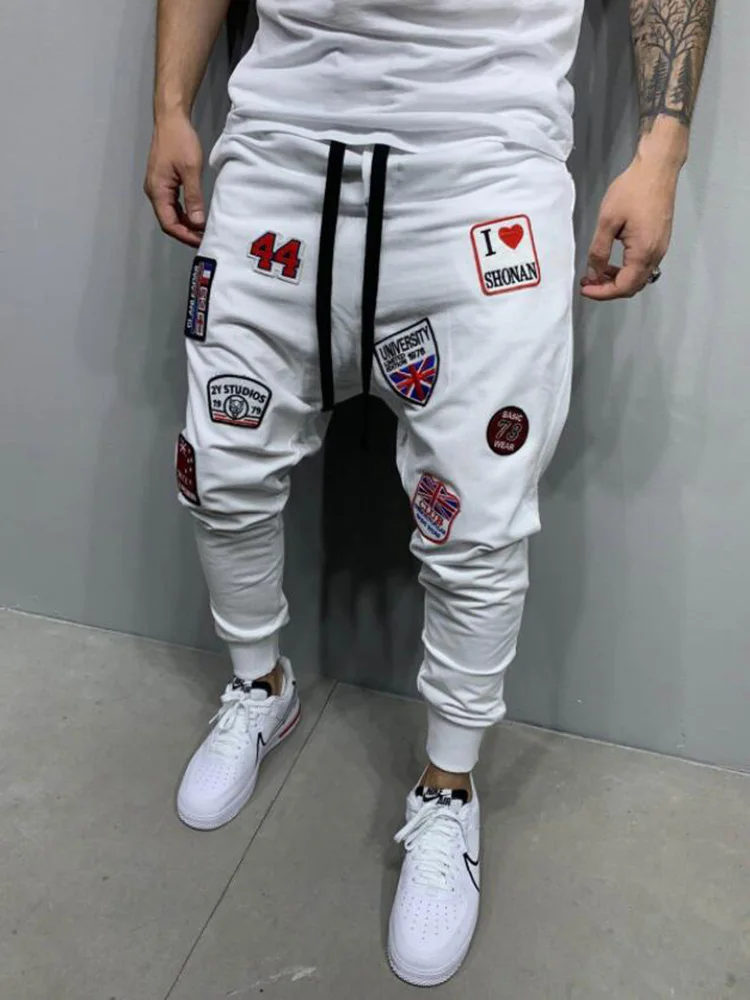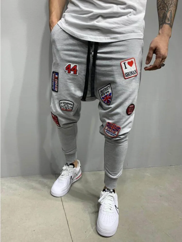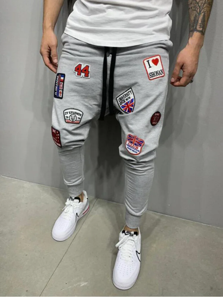 Весенние и осенние новые мужские тонкие спортивные штаны с высокой уличной вышивкой для фитнеса, модные повседневные спортивные штаны-шаровары для бега
