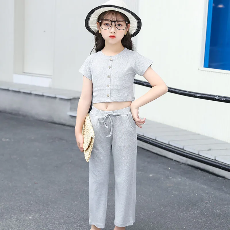 От 3 до 12 лет Одежда для девочек летний модный комплект из двух предметов; Новинка; Кардиган с короткими рукавами + брюки; Качественная детская одежда