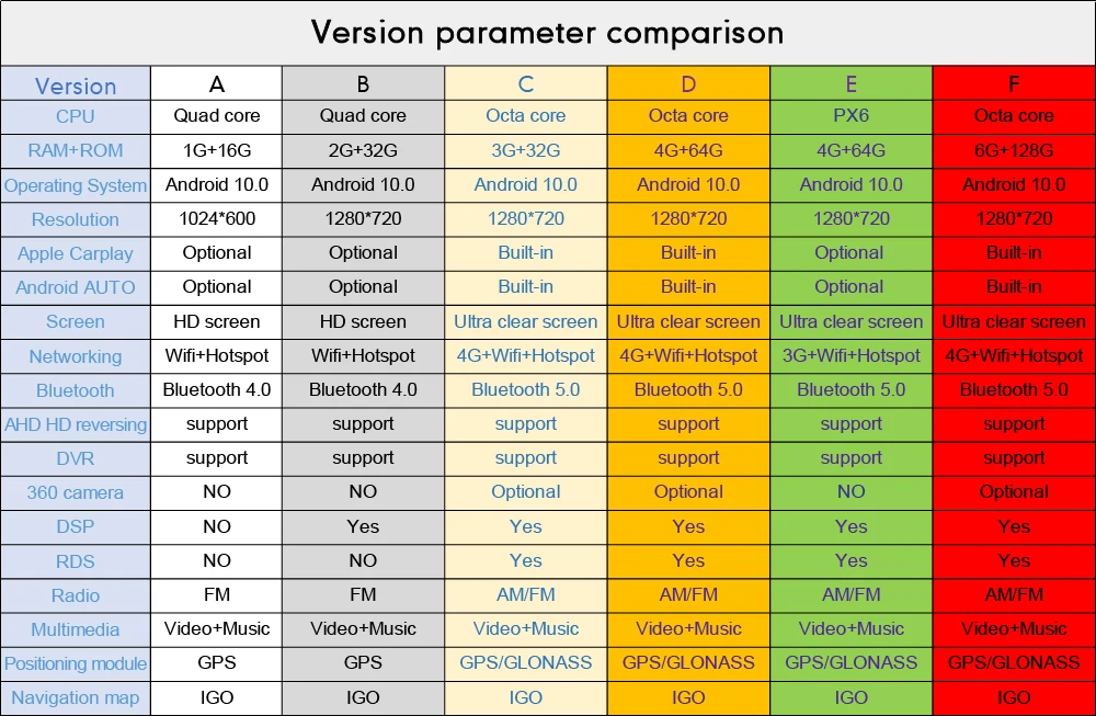 1. Операционная система Android 10,0 2. ЦП: ВосьмиядерныйCortexTM A55/Восьмиядерный процессор Intel, GPU Mali T820 MP2,AtomX86 architecture, с тактовой частотой 1,872 ГГц3. ОЗУ: 3 ГБ/4 ГБ/6 ГБ4.ROM:32G/64GB/128GB5.Bluetooth: WT200 5,06. Размер экрана: 9/10 дюйма7. Дисплей: IPS дисплей + 2.5D G + G емкостный сенсорный экран8. Поддержка разрешения1280*7209. Радио IC:TDA7708/NXP685110.DSP: С высокой точностью, с низким уровнем шума DSP с 32-полосным эквалайзером, объемный звук, независимая Регулировка переднего и заднего воспроизведения звука)11. Поддержка аудио форматов: MP3,WMA,WAV,OGG,FLAC,APE,ACC и т. Д. Форматы мультимедиа (поддержка 1080P воспроизведения мультимедиа видео, воспроизведение музыки без потерь)12. Поддержка видео форматов: MP4,FLV,TS,3GP RMVB,MKV,MOV,WMV,AVI,MPG,MPEG и т. д. Видео форматы, поддержка s 1080p HD видео (MPEG-1,MPEG-2,MPEG-4,H.263,H.264,AVS,VC-1,VP8,MVC)13. Встроенный GPS и ГЛОНАСС двойного спутникового позиционирования14. Радио: AM Частотный диапазон: 522-1620 (Европа), 530-1710 (Америка), 522-1620 (Россия) FM Частотный диапазон: 87,5-108 (Европа), 87,5-107,9 (Америка), 65,0-108,0 (Россия)15.RDS радио: Yes''16. Wi-Fi (bluetooth WIFI): Встроенный микрофонный пульт управления для громкой связи17. Поддержка Bluetooth аудио плеера/функции телефонной книги(Внимание: Эта функция может быть реализована только тогда, когда мобильный телефон поддерживает аудиовыход Bluetooth/выход контактов)''18. Встроенный микрофон/Apple Carplay/Android Auto19.USB/SD:SD/USB MAX 32B,20. Сабвуфер: Поддержка аудиовыхода сабвуфера21. Аудиовыход: 3 канала аудиовыхода22. Эквалайзер: Максимальная мощность звука: 4*45 Вт/4x50W23. Дисплей: он может воспроизводить 1080P HD видео и играть в 3D игры плавно24. Сеть 4G TD-LTE/FDD-LTE/TD-SCDMA/HSPA(+)/WCDMA/HSPA(+)/GSM/GPRS/EDGE25.WIFI: встроенный wifi, вы можете использовать hotsport wifi с вашего мобильного телефона,26. Поддержка RCA типа обратного ввода камеры, автоматически переключается на заднюю камеру при заднем движении автомобиля/Поддержка BT656 / MIPI или 360 панорама27.TPMS Поддержка USB давления в шинах, серийное давление в шинах)28.DVR Поддержка USB/RCA видео вход DVR29. Видео вход поддержка AHD,TVI видео вход30. Видеовыход поддерживает 1 канал видеовыхода31. Зеркальная поддержка зеркальной связи телефона32. Для телефона android, используйте usb-соединение, вы можете зеркально и контролировать устройство; Для iPhone, используйте Wi-Fi разъем, вы можете просто mirror на устройстве, не может контролировать.''33. Управление рулевым колесом: поддержка изменения трека, громкости и т. д. удобно, не снимая руки с руля, что делает ваше вождение гораздо более безопасным.Язык OSD:Поддерживающий Язык: английский/русский/французский/немецкий/испанский/итальянский/Арабский/Португальский/Турецкий/тайский/Польский/иврит и т. д. более 20 видов языковСтандартная функция:GPS + радио + Bluetooth + Телефонная книга + мобильный телефон зарядка + USB + WiFi + AUX + зеркальная ссылка