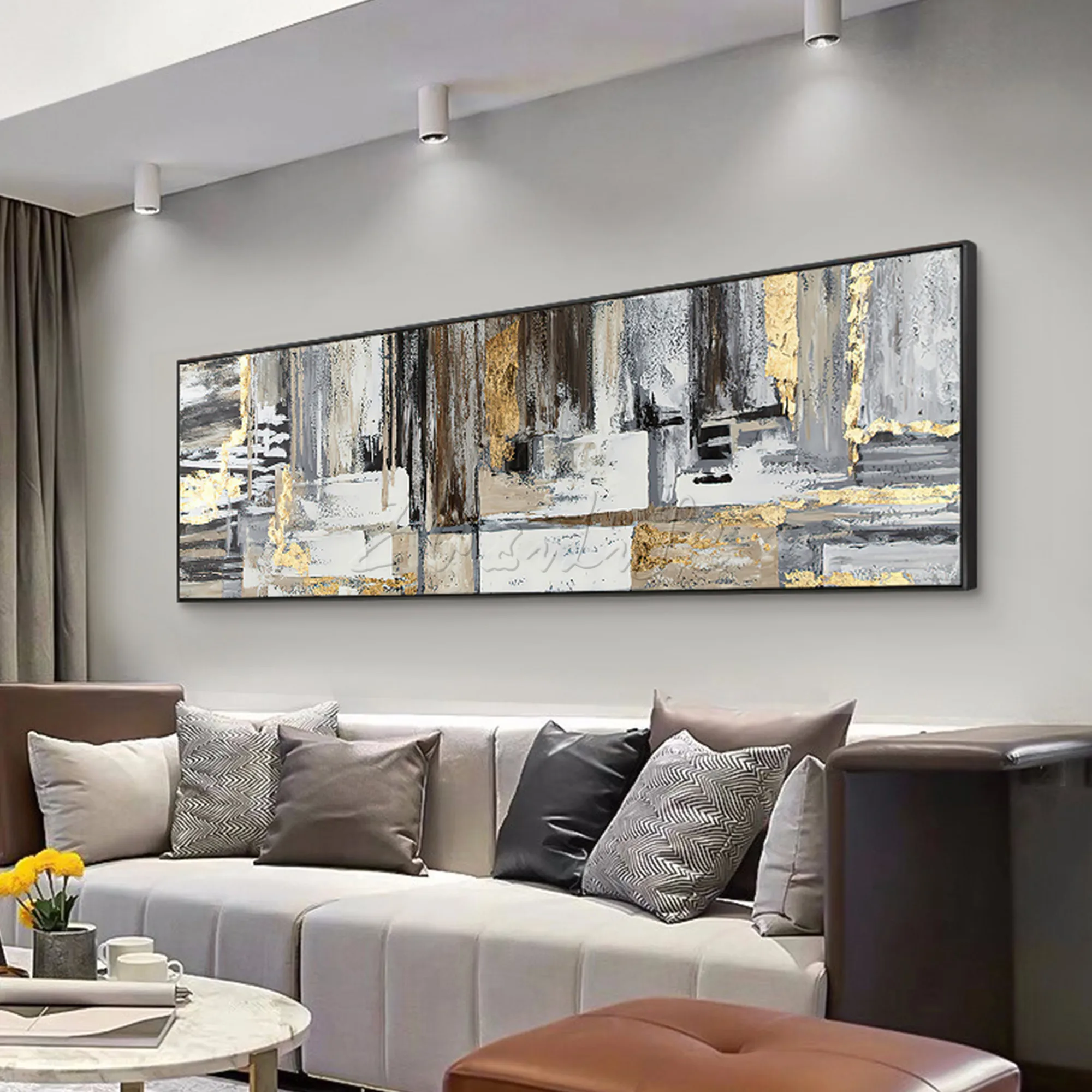 Современная Золотая абстрактная акриловая Картина на холсте в рамке, настенная живопись, Большой Настенный декор, художественное украшение для дома, украшение интерьера