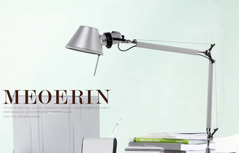 Adjustable Long Swing Arm Desk Lamp Modern Fashion Silver Aluminium Office Reading Study LED Clamp Desktop Table Light with Clip