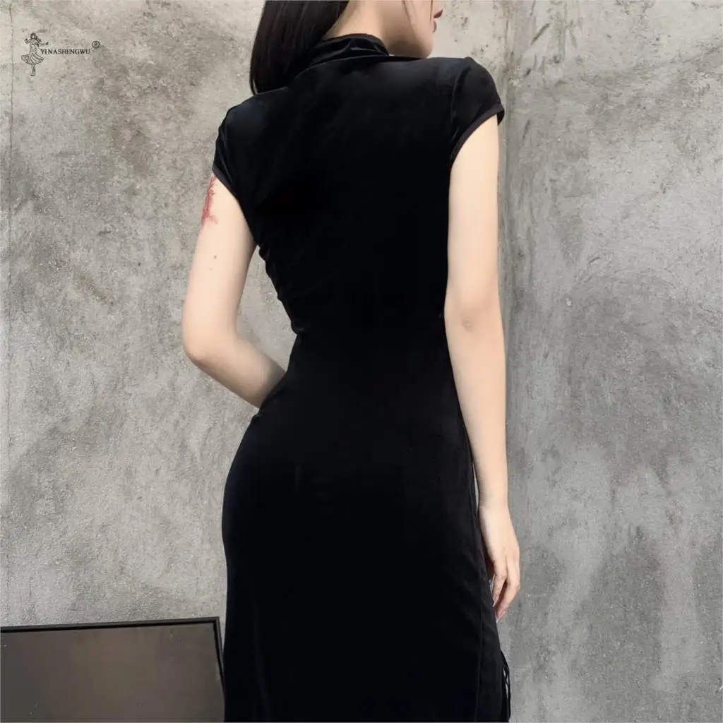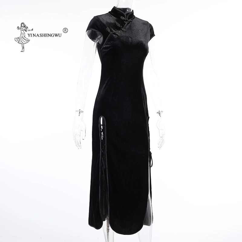 Женское платье в готическом стиле Goth Dark, винтажное облегающее вечернее платье черного цвета, обтягивающее платье-Ципао