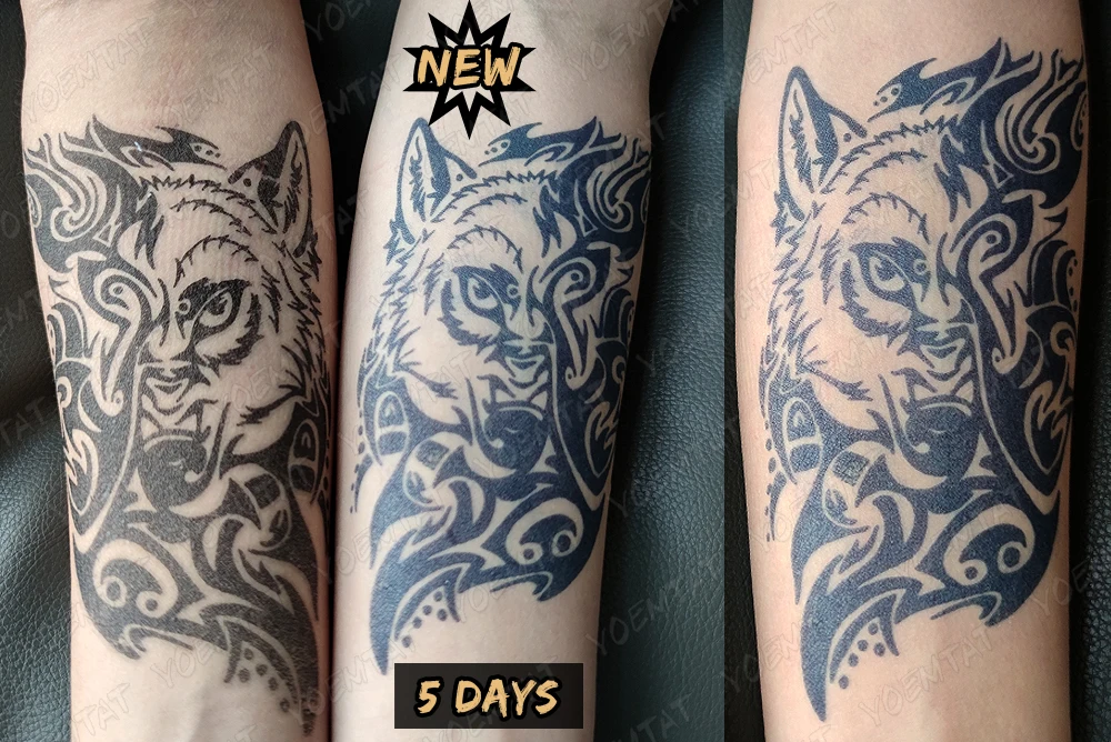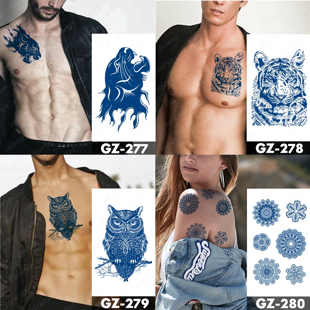 Когда Татуировка только что перенесена на кожу, ее цвет светло-серый, на ней будут отражательные следы s светильник образного клея. В это время обратите внимание, чтобы избежать прикосновений и натирания до полного высыхания, иначе это приведет к стиранию рисунка. Для лучшего эффекта сохранения рекомендуется использовать после бритья.