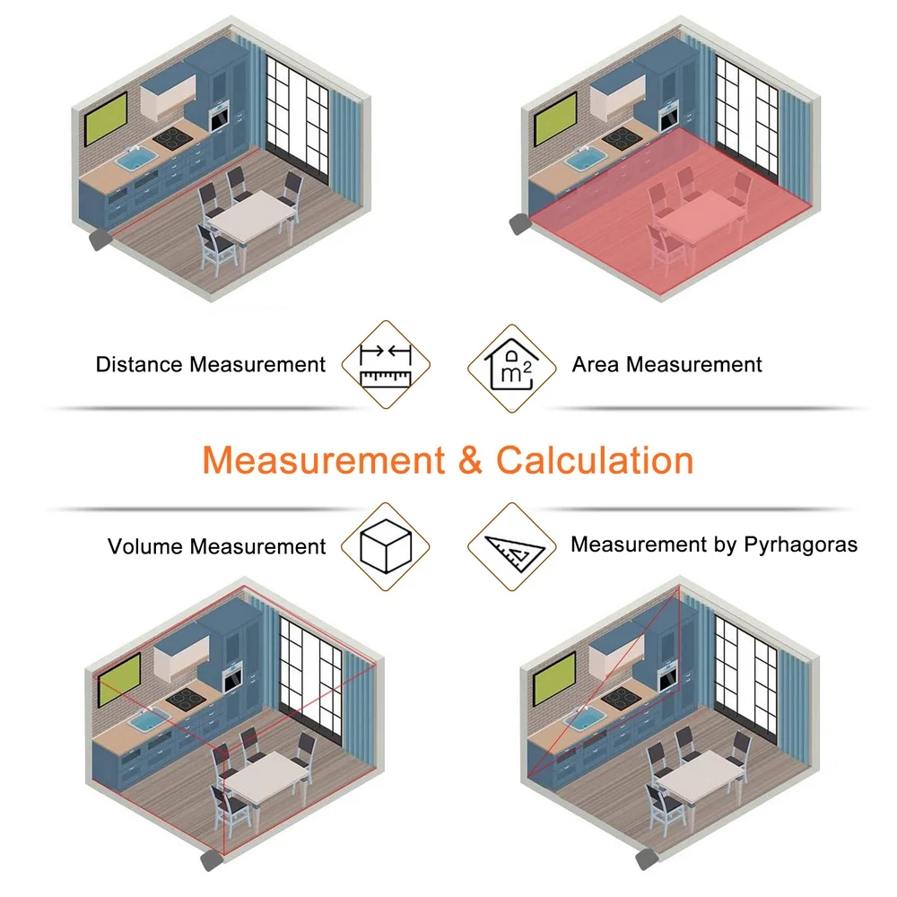 【Wide Применение 2-в-1 лазерная рулетка 】Combining в 131,2 м измерение лазером и 16,5 Ft рулетка, вы можете свободно выбирать режим измерения в зависимости от длины и комнаты, идеально подходит для дома, строительства и промышленности, особенно в больших областях, таких как комнаты, квартиры, здания, недвижимость, фабрики, склады и т. Д. Советы: Обратите внимание на контрольную точку измерения во время измерения.1X Ремешок