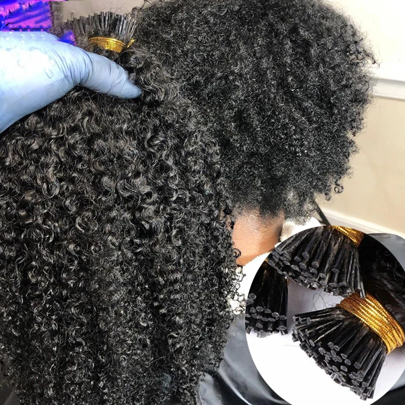 3B 3C афро кудрявые человеческие волосы бразильские волосы I Tip Microlinks наращивание волос Объемный натуральный цвет для черных женщин