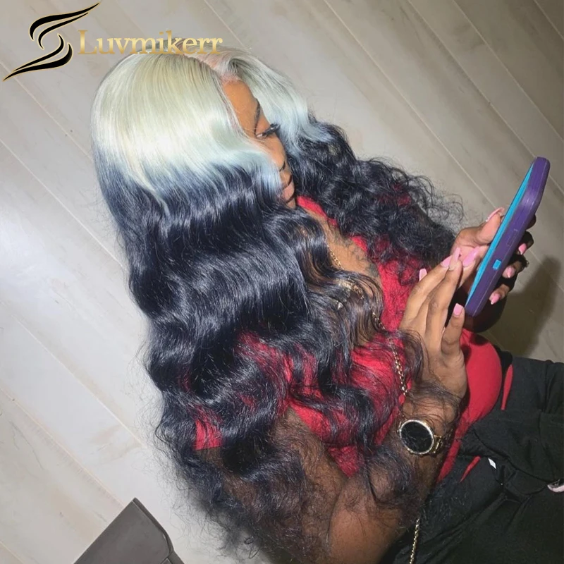 Hd эффектом деграде (переход от темного к блондинка 613 Синтетические волосы на кружеве парик предварительно цвет: черный, синий заканчивается вьющиеся 13x6 Samsung Galaxy прозрачный Синтетические волосы на кружеве al парик человеческих волос для Для женщин