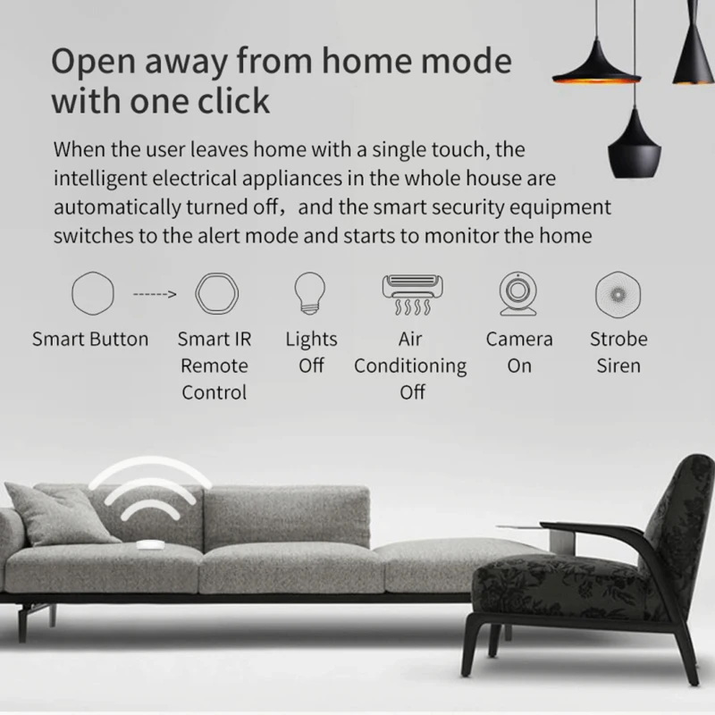 Установите различные эффекты управления одним нажатием, двойным нажатием и длинным нажатием трех действий, и вы можете управлять тремя или тремя группой устройств одновременно. Например, одно нажатие для включения/выключения торшера, двойное нажатие для включения/выключения кондиционера, длительное нажатие для выключения всей бытовой техники и т. Д.