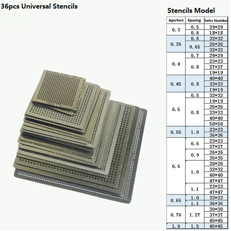 27 шт./36 шт. BGA трафареты Универсальный прямой нагревательный трафарет с BGA Набор для SMT SMD IC Chip reball