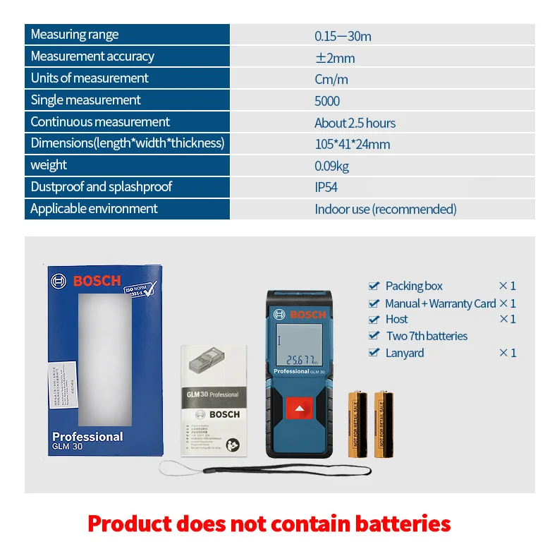 IP 54, максимальный диапазон возможностью погружения на глубину до 30 м, Класс лазера 2, точность измерения ± 2 мм просим учитывать, что в связи с замерами времени <0,5 s.