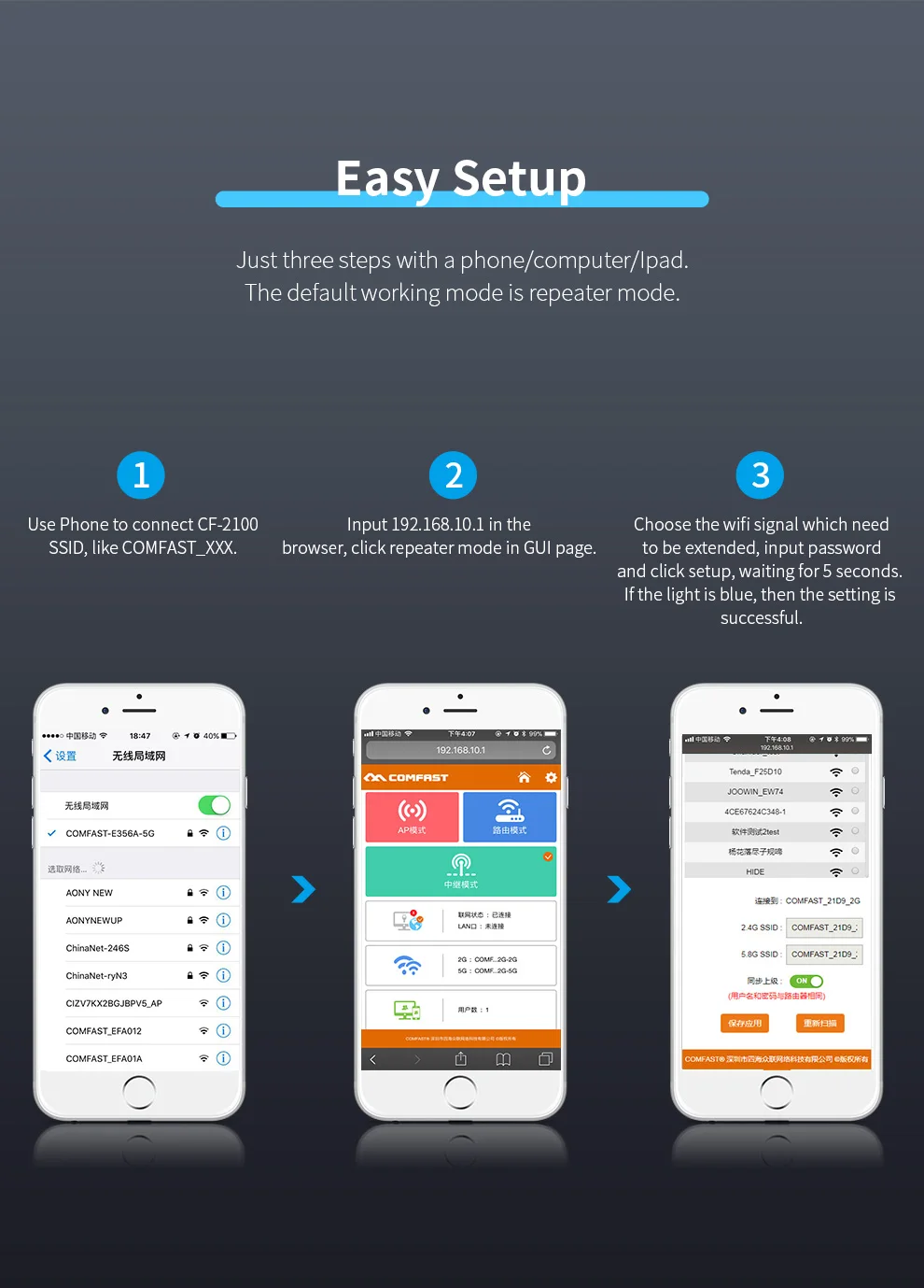Q & AВ: из-за большой площади дома, многостенных препятствий и факторов помех, часто есть WiFi сигнальные слепые зоны, что мне делать?A: Выберите CF-AC2100 беспроводного ретранслятора для расширения/усиления сигнала.