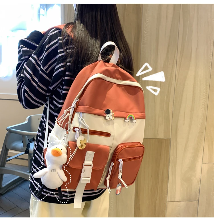 Симпатичный значок карамельного цвета, женский рюкзак, Женская Студенческая школьная сумка, Модный водонепроницаемый рюкзак для девочек-подростков, сумки для книг, Mochila