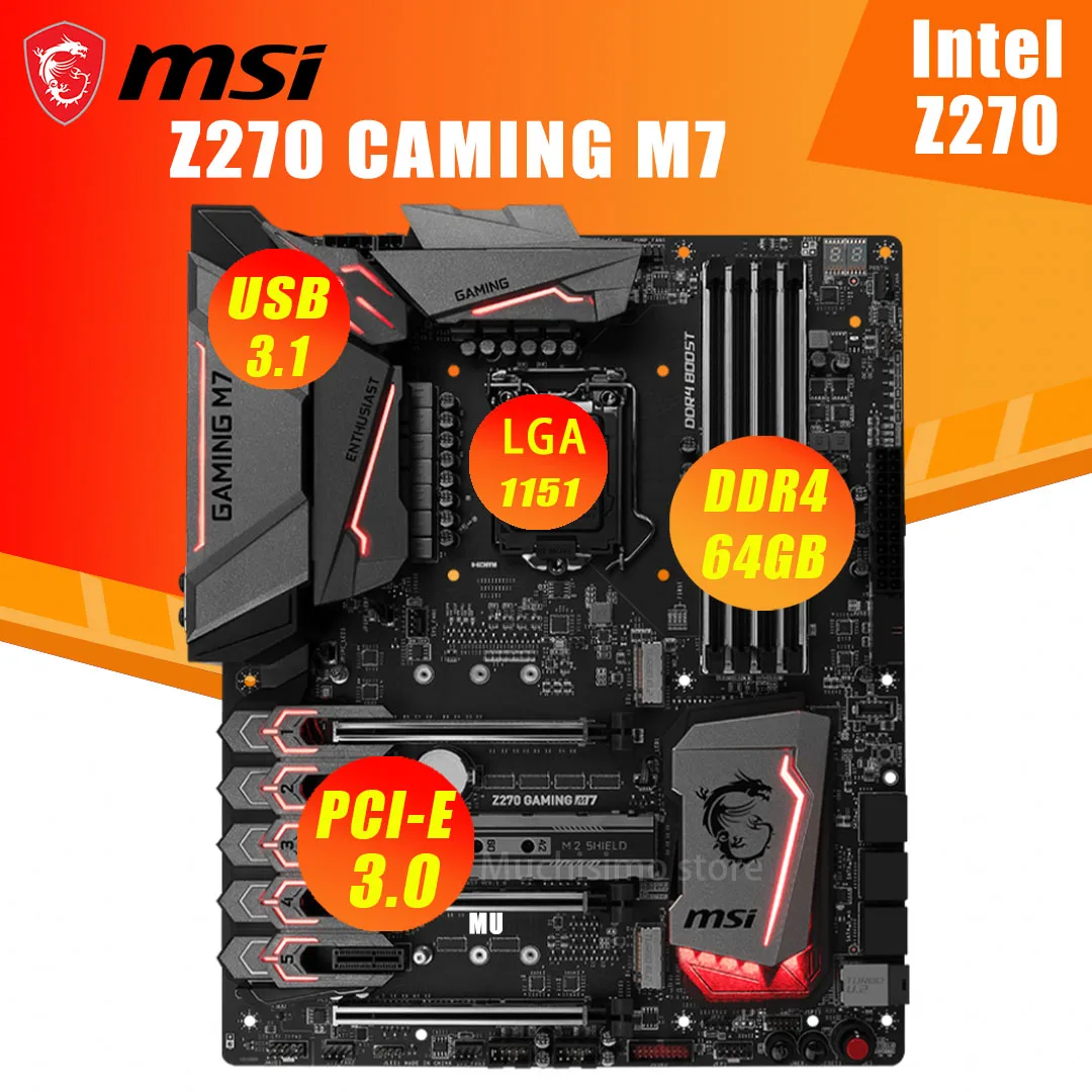 Материнская плата LGA 1151 MSI Z270 GAMING M7 i7 i5 i3 DDR4 64 Гб PCI-E 3 0 M.2 USB3.1 HDMI Type-A Desktop Placa-MOM ATX |