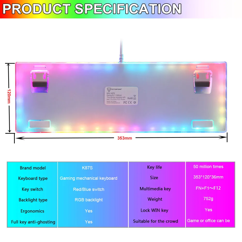 -Механическая игровая клавиатура Motospeed K87S-1 шт.