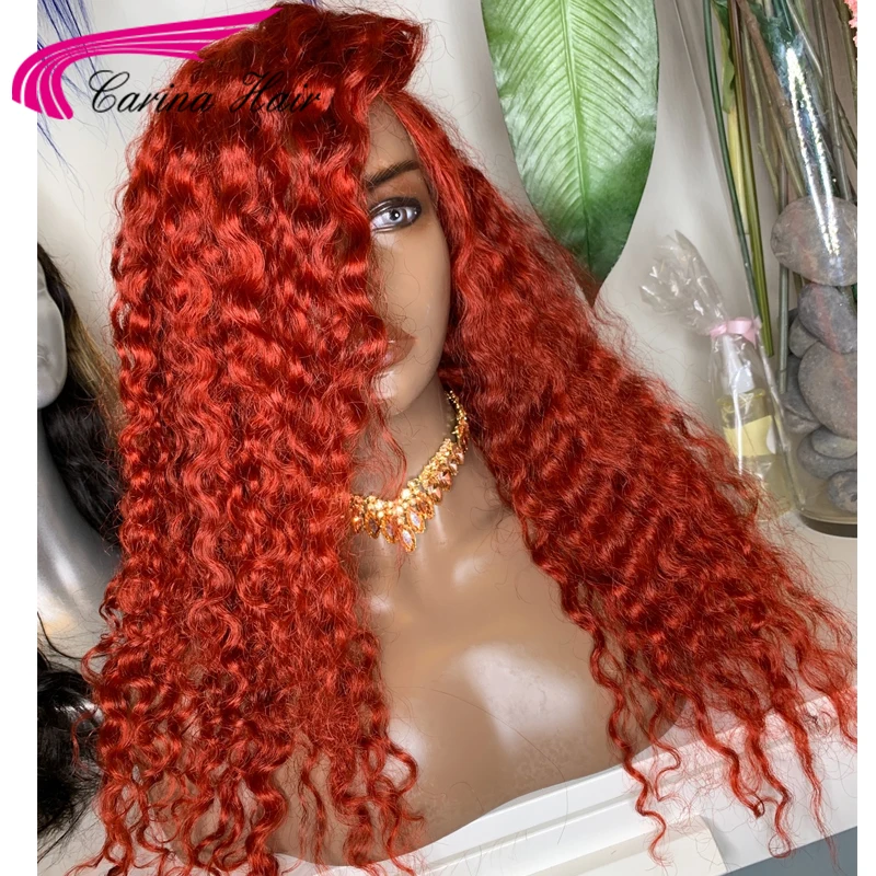 Оранжевый красный парик из человеческих волос для женщин 180% красный кудрявый парик фронта шнурка глубокая боковая часть бразильские Remy кружевные передние человеческие волосы парики
