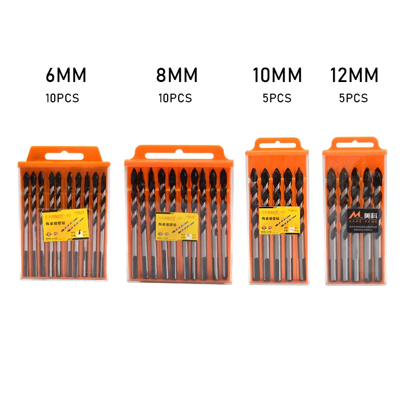 Особенности: -Материал: наконечник из карбида вольфрама, который легко проникает в различные материалы и уменьшает прорыв, такие как плитка, бетон, кирпич, стекло, пластик и многое другое -Размер наконечника: 6 мм, 8 мм, 10 мм, 12 мм -Треугольный хвостовик -Примечание: при сверлении твердого материала (стекло, фарфоровая напольная плитка, мрамор или гранит), пожалуйста, используйте воду для снижения температуры -Хранить в пластиковый чехол (случайный цвет)