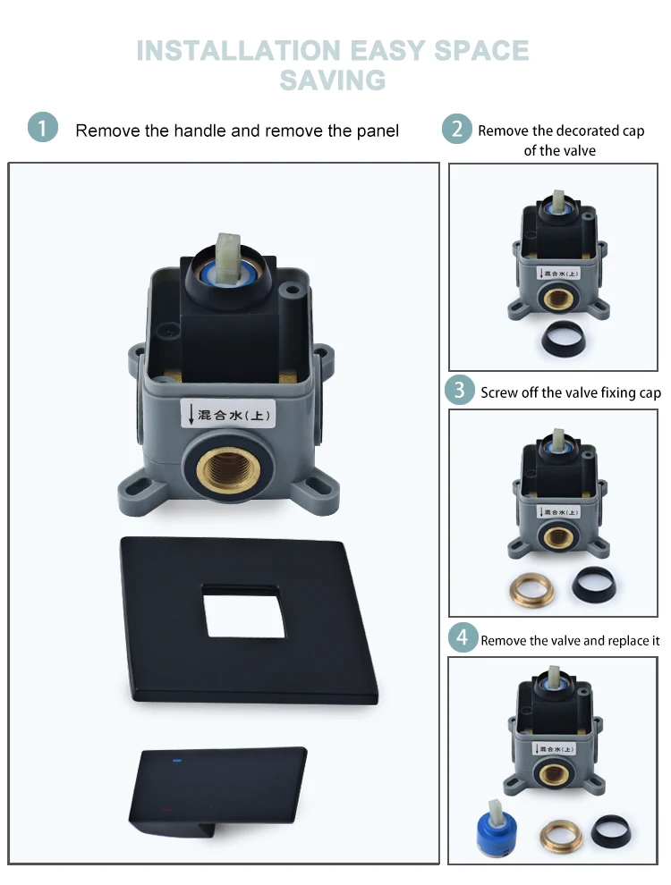 Материал: корпус из латуни + душевая кабина из нержавеющей стали + верхний душ из АБС-пластика