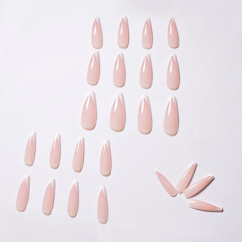 24 шт./компл. модные французские накладные ногти удлиненные акриловые балетные ногти с узором телесной коровы с клеевым покрытием для маникюра полные накладные ногти для дизайна ногтей