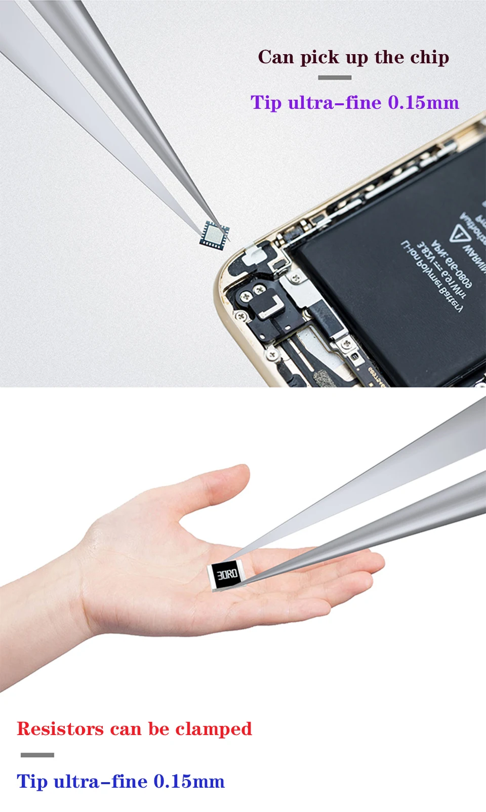 Может применяться для небольших резисторов в упаковке 01005, зажима стружки и других операций